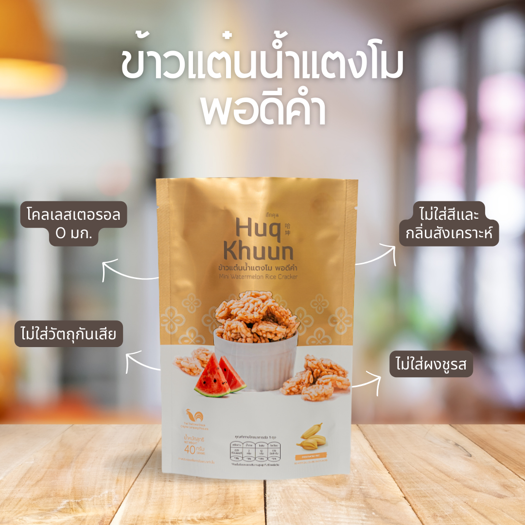 ひと口サイズで食べやすい、タイ伝統のライスクラッカーです。厳選したもち米を蒸し、独自レシピのスイカ果汁で味付けした後、乾燥させ、揚げてから余分な油を落とすように焼き上げます。サクサクとした食感、香ばしさ、自然なおいしさをお楽しみいただけます。